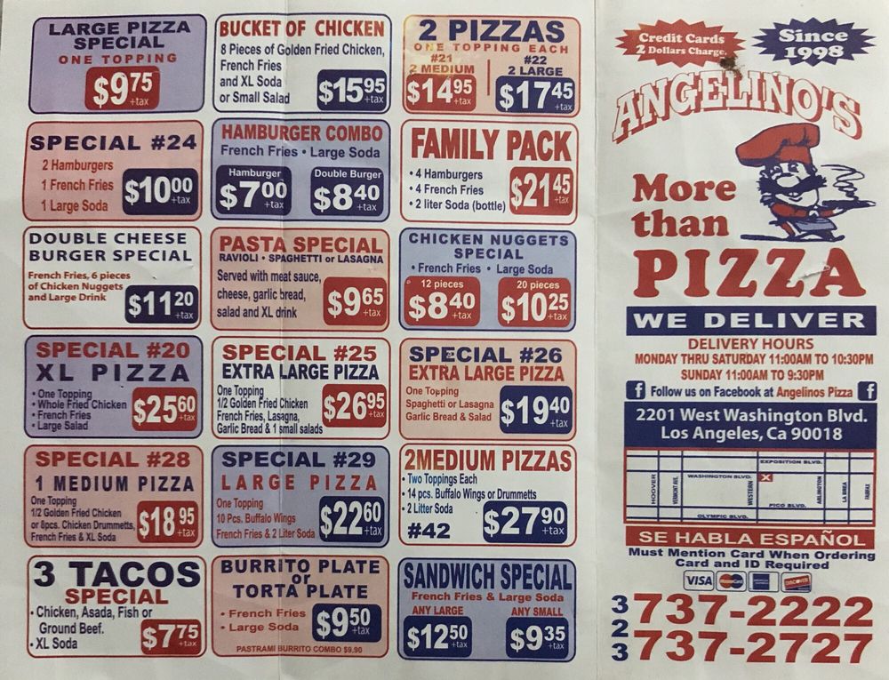 Angelino's Pizza Menu